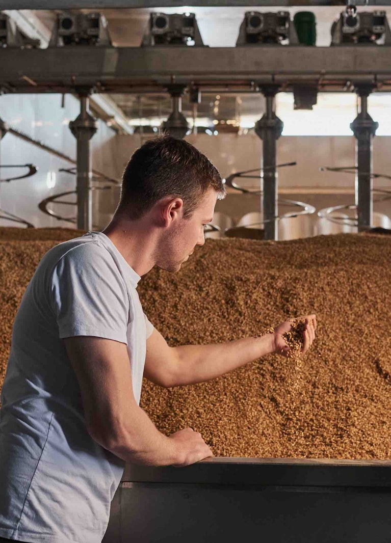 In Europe when they make whisky, typically they’ll use one distiller’s malt, which produces a very high yielding spirit. To give it some context: a distiller’s malt would typically produce about 400 pure litres of alcohol per tonne of malt. The chocolate malt we use – one of our six specialty malts – on the other hand, will only yield 30 to 40 litres of alcohol per tonne. It’s very inefficient, but the flavour it produces is incredible.