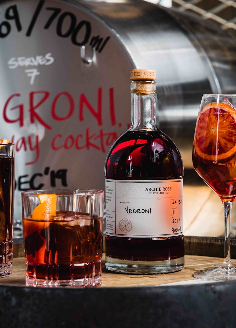 Archie Rose Negroni ($69); a boozy, bitter, sweet and silky mix of Signature Dry Gin, Campari and sweet vermouth.