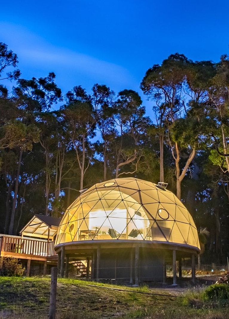Camp in style for two nights inside Mile End’s luxurious light-filled geodesic domes. It’s hard to believe it from the outside, but each dome hides a private bathroom, kitchen, king bed, adjacent deck with private spa bath and barbecue. A pamper pack including local chocolates will sweeten the deal in this one-of-a-kind WA escape.