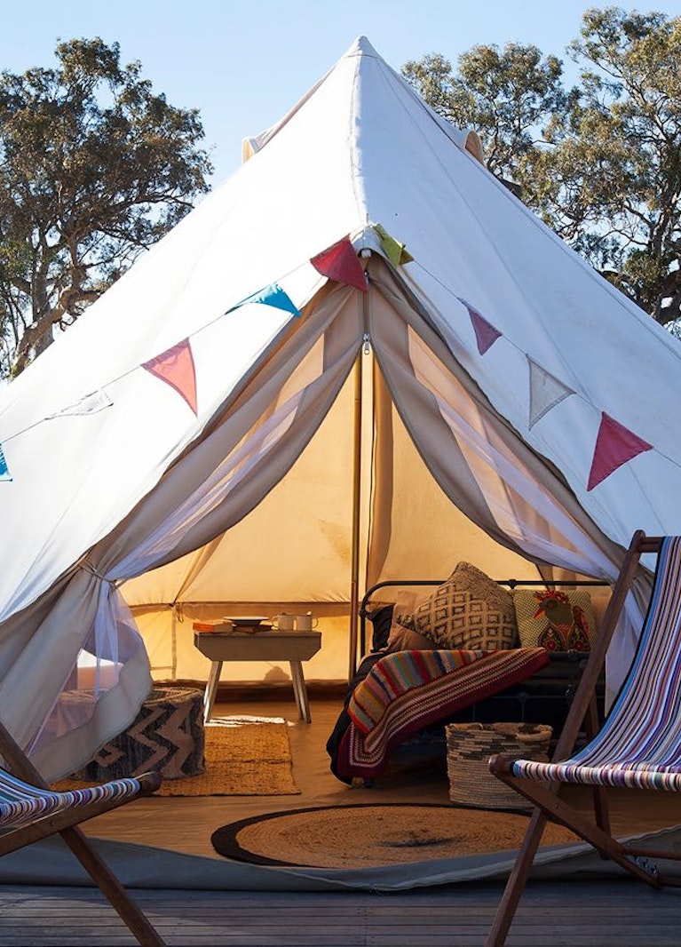 If you won two nights in these brilliant bell tents at Bellwether Wines in South Australia's Coonawarra region, you'd not only wake up in an expansive linen-clad bed to the birds, 400-year-old red gums and home-cooked bread, but you'd be just strolling distance from the winery cellar door, so it won't be long in between tastings.
