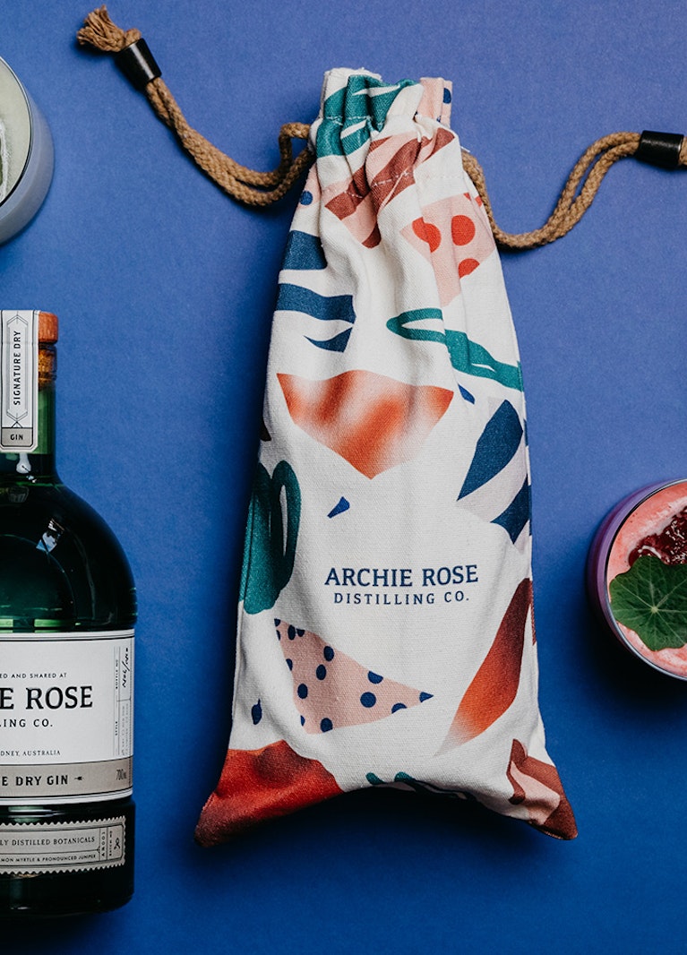 If you’ve fallen for Elliott’s playful work of art, but have your heart set on one of our Signature or Limited Release Spirits and Bottled Cocktails, rest easy knowing you can also get your hands on the bag by purchasing a 700ml bottle of Archie Rose Signature Dry Gin, Original Vodka, Distiller's Strength Gin, White Rye, Archie Rose x Sydney Opera House Outside & Inside Gins and our Bottled Cocktail range.