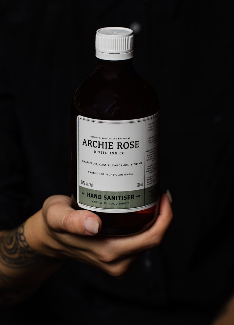 We started making hand sanitiser because we needed some. We needed it for our venue staff to operate in what was fast becoming a fearful environment: working on the front line of customer service when anyone could be sick without showing symptoms. We needed it for all our essential workers onsite. Day by day as reports came in of businesses making the change to working from home, our team felt more uneasy, more exposed. We couldn’t find any sanitiser anywhere. So we made two litres. It smelled good! OG Batch 1 Archie Rose Hand Sanitiser never saw the commercial light of day, there was no label. Though it did grace the hands of all who walked through the doors of our bar in Rosebery in the week prior to its close. People started complimenting it and asking about purchasing it. Things moved so fast in that week, that by the time reports came through from the team that people were enquiring after it at the bar it was all you could hear in every direction. People often ask me whose idea it was - it was literally so many people at the same time it feels like collective consciousness.