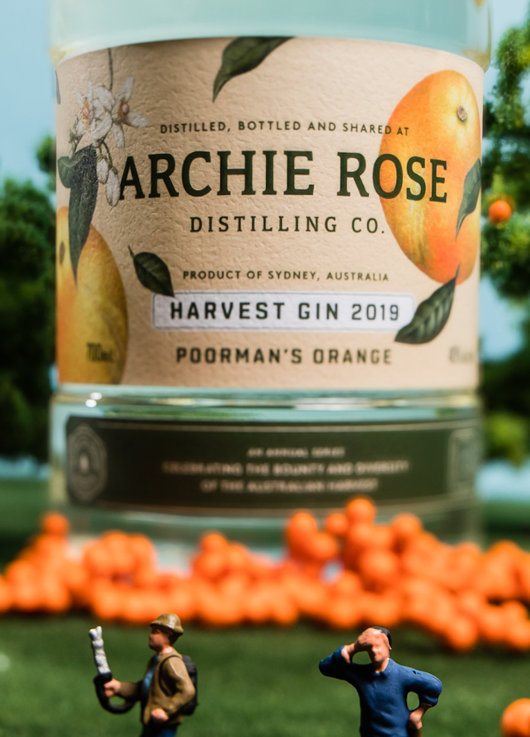 Poorman’s Orange Gin, 2019 First cab off the rank was Poorman’s Orange Gin, released in 2019. The oranges themselves were the catalyst for the whole project, really. Archie Rose founder Will Edwards and Head Distiller Dave Withers got to talking about the fruit after they’d read an article in Gourmet Traveller WINE mentioning them. Having been aware that exceptional citrus grower Peter Dryden of Wombat Bottoms was a leader in the citrus-growing space, they knew his produce would be the ultimate fruit to work with. Peter’s dedication to craft, friendly professionalism and quality of produce entirely encapsulated the premise of the Harvest series and the Archie Rose ethos. For us it wasn’t just about taking the fruit and distilling it, it was, and still is, about supporting the producer and helping in any way we can, particularly the journey of growing a botanical to a scale not traversed before. This was precisely one of the small hurdles we overcame when creating this first iteration: supply. The year we were distilling Poorman’s Orange Gin was the same year Jock Zonfrillo’s South Australian restaurant Orana staged a pop-up in Sydney requiring 700kg of Poorman’s orange. We ultimately got the supply we needed, and plenty of it, and were able to craft a gin so indicative of a moment in time, a specific harvest, a gin of 2019.
